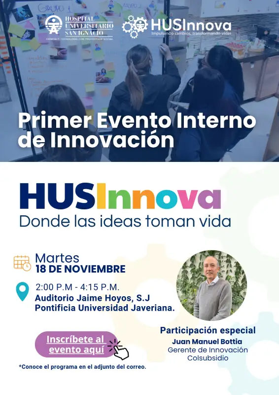 En esta página podrás encontrar todos los eventos organizados por el Hospital Universitario San Ignacio. Si el evento o actividad académica es de tu interés, por favor haz clic en "Conoce el programa e inscríbete".
